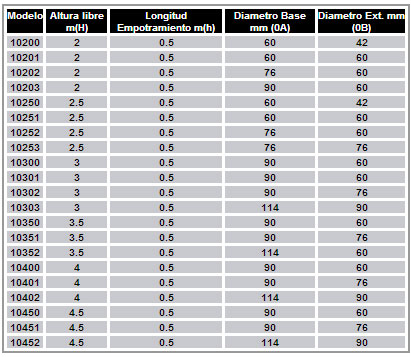 Tubos de Acero sin costura schedulle 40 - base segun pedido al igual que su altura ( Base anclaje a cimiento o empotramiento)