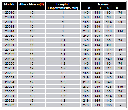 COLUMNAS RECTAS DE 10 A 13 METROS